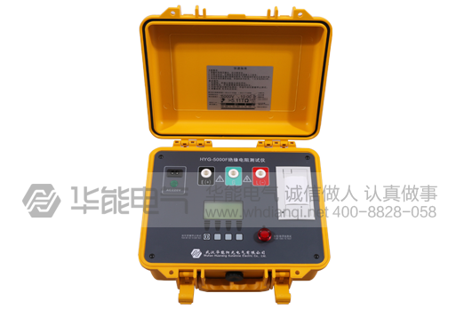 HYG-5000F绝缘电阻测试仪,具有4个量程:500V, 1000V, 2500V, 5000V,测试最大可达5TΩ。